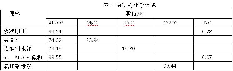 目前在耐火材料相關(guān)專業(yè)公開的兩種可以顯著降低澆注料加水量的技術(shù)① 安邁的大骨料技術(shù),通過增大骨料粒度、減少基質(zhì)量達到降低加水量的目的,該技術(shù)只適用于大尺寸制品②VSV 的新型澆注技術(shù),骨料粒度不變,通過增加顆粒量、減少基質(zhì)量達到減水的目的,并在諸多澆注料中得到應(yīng)用。降低澆注料加水量來改善其使用性能,是耐火澆注料新技術(shù)的追求,更是提高產(chǎn)品水化強度的成績。 開發(fā)一種大幅度降低澆注料加水量的技術(shù)。與上述技術(shù)不同,本技術(shù)不改變骨料與細粉的比例,僅通過優(yōu)化澆注料的粒度分布、原料組成,并對生產(chǎn)工藝進行調(diào)整來達到減水目的。采用本技術(shù)生產(chǎn)的新型致密高強剛玉—尖晶石澆注料的加水質(zhì)量分數(shù)僅為2.5%~3.0%(常規(guī)技術(shù)生產(chǎn)的ULC剛玉尖晶石澆注料的加水質(zhì)量分數(shù)為4.0%~4.5%),因而其致密度、強度大幅提高,用其生產(chǎn)的透氣磚的使用壽命大幅提升。 1試驗:本試驗中所用主要原料及其化學(xué)組成見下表1