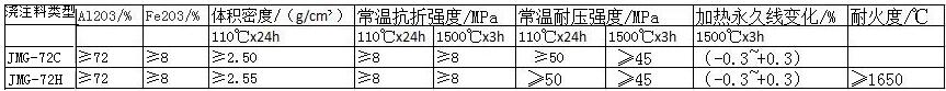 表6爐底用高鋁質(zhì)耐火澆注料性能指標(biāo)
