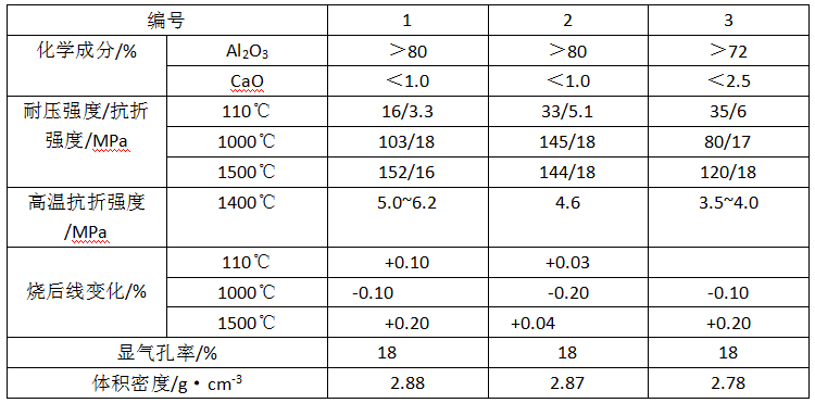 表1-1為氧化鋁纖維增強澆注料的性能。該料為超低水泥高鋁質耐火澆注料,從表中可見,強度高、燒后線變化較小,其性能是優(yōu)良的,具有發(fā)展前途。