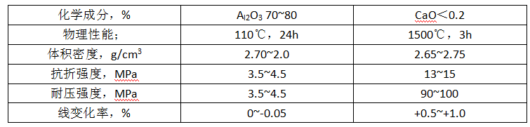硅溶膠結(jié)合的無水泥澆注料理化性能與上述介紹的硅微粉結(jié)合的相似
