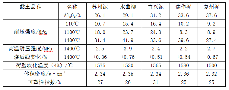 表1-1 黏土品種對(duì)可塑料性能的影響