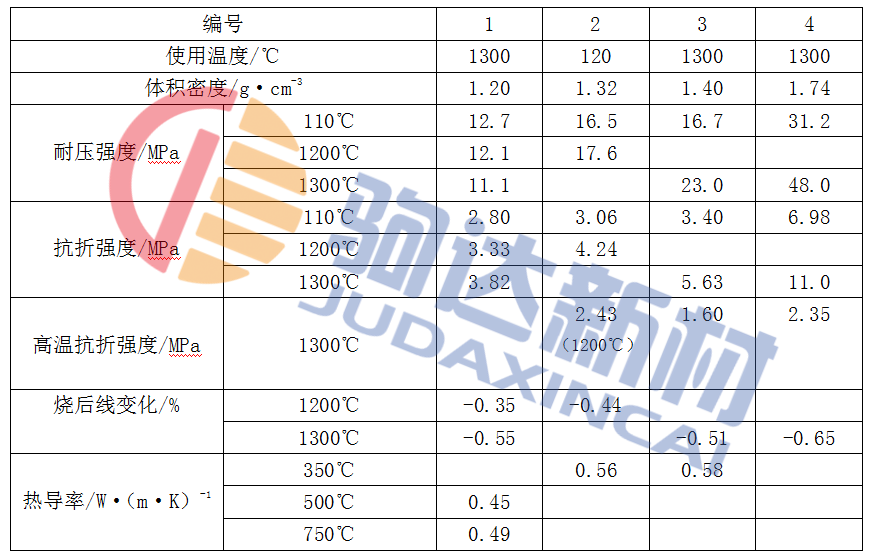 在多孔熟料耐火澆注料原材料和配合比一定時,其體積密度越大,烘干抗折強度隨之而增加,高溫?zé)髲姸纫灿蓄愃频囊?guī)律。應(yīng)當(dāng)指出,輕質(zhì)耐火澆注料的主要性能是體積密度、強度、燒后線變化和熱導(dǎo)率。四者有密切關(guān)系,應(yīng)統(tǒng)籌兼顧,綜合評價。當(dāng)體積密度增加時,強度提高,燒后線變化改善,但熱導(dǎo)率增大了,這是不利的。