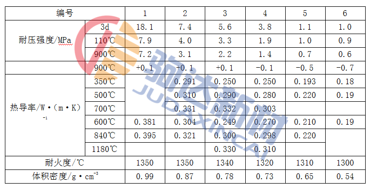 頁巖陶粒耐火澆注料的性能,是用標(biāo)準(zhǔn)試樣按標(biāo)準(zhǔn)檢驗(yàn)的。按配合比要求,稱量原材料質(zhì)量,干混均勻,即可加水濕混煉。拌和料倒進(jìn)模內(nèi),振動(dòng)臺(tái)震動(dòng)成型或手工振動(dòng)成型,直至料面返漿為止。因?yàn)橄挡捎迷ぬ樟W髂突鸸橇希瘦^小,故不能先濕潤(rùn)陶粒再加粉料和水泥。成型后的試樣,自然養(yǎng)護(hù)1天拆模,再自然提高于25℃時(shí),試樣或襯體初凝后,應(yīng)進(jìn)行潮養(yǎng)護(hù)。從表中看出,頁巖陶粒耐火澆注料的性能是優(yōu)良的。體積密度為0.99g/cm3的澆注料,3天耐壓強(qiáng)度大于10MPa,可作成預(yù)制塊進(jìn)行吊裝,同時(shí)燒后線變化呈膨脹狀態(tài)(陶粒二次膨脹所致),高溫下不易產(chǎn)生裂紋,有利于使用。