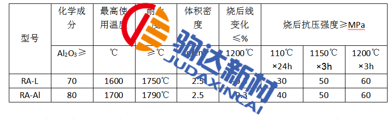 RA系列超高強(qiáng)度低水泥澆注料技術(shù)指標(biāo)