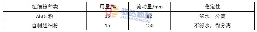 表4 二種超細(xì)粉在自流澆注料中的性能比較