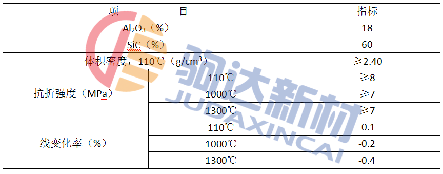 1.1 SiC#澆注料的技術(shù)指標(biāo)(表1)