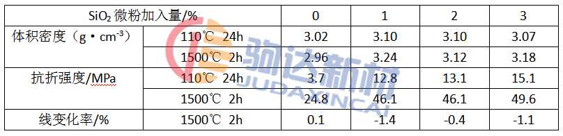 表1 SiO2微粉添加量對(duì)澆注料性能的影響