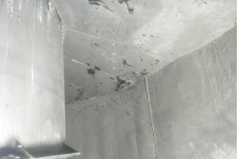 施工后的烘爐過(guò)程也是在賣家技術(shù)指導(dǎo)下進(jìn)行了烘爐,烘爐周期在10天半,頭三天在100℃以內(nèi)其中第一天溫度在30℃左右,第二天在60℃左右,第三天在80℃左右,最高烘爐溫度在550℃,經(jīng)過(guò)烘爐后的耐磨澆注料出現(xiàn)了大部分部位的表面炸裂并帶有孔洞及長(zhǎng)裂紋的情況以下是烘爐后所拍攝照片。后經(jīng)我公司分析問(wèn)題的原因在于以下幾方面,以警后患。