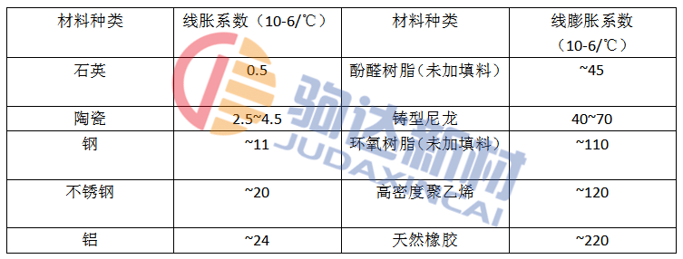 樹脂固化物的熱膨脹系數(shù)要比金屬大幾倍,無機填料的熱膨脹系數(shù)比金屬小一個數(shù)量級。表1列出了一些材料的熱膨脹系數(shù)
