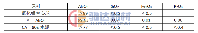 本文通過對主要原料氧化鋁空心球、鋁酸鈣水泥的原料化學組成和礦物相分析,結(jié)合CaO—Al2O3系統(tǒng)相圖及制品X—射線衍射的結(jié)果進行研究,并通過相關實驗,就低水泥結(jié)合氧化鋁空心球輕質(zhì)澆注料的性能進行了研究。