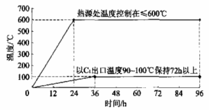 (5)測溫需在C1的測溫孔進行,保溫90~100攝氏度72小時為原則。溫度<90攝氏度時,可適量調(diào)整升溫,但熱源處溫度必須≤600攝氏度。具體如圖1。