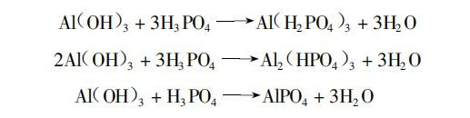 磷酸鋁是不定形耐火材料中應(yīng)用較為廣泛的一種磷酸鹽結(jié)合劑。磷酸鋁是由氫氧化鋁與正磷酸反應(yīng)而制得的,反應(yīng)時(shí)由于中和程度不同分別有磷酸二氫鋁,磷酸氫鋁和正磷酸鋁等三種不同產(chǎn)物,其反應(yīng)式如下: