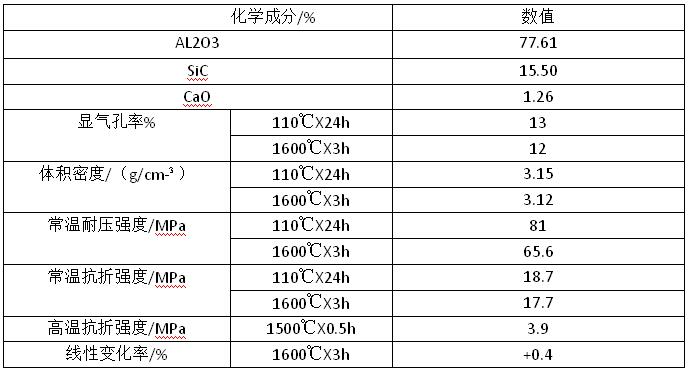 上表中的各項理化性能,除1600℃保溫3h燒后耐壓強度略低外其它各項指標(biāo)都很優(yōu)秀1 600℃保溫3h燒后耐壓強度指標(biāo)比較低的原因為本澆注料中SiC含量較高,煅燒溫度又很高,故SiC在煅燒中的氧化難以避免,從而影響了強度,而且煅燒后由于氧化表面凸凹不平也使檢測時的耐壓強度下降如果將其埋炭煅燒,則強度可達(dá)到107.5MPa。