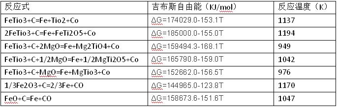 鈦渣是一種高熔點的爐渣。鈦渣熔體具有強腐蝕性、高導電性和黏度變化劇烈的特點。鈦渣 的主要成分是TiO,此外還含有相當數(shù)量的低價鈦氧化物(Ti3O5、Ti2O3、TiO)和鐵氧化物(FeO和Fe2O3),因而具有極高的化學活性。鈦渣電爐的爐內(nèi)最高溫度可達2073K,在這樣高的溫度下,它們幾乎能與所有的金屬和非金屬材料發(fā)生化學反應。事實上,工業(yè)生產(chǎn)時作為工作層的爐襯無論采用哪一種耐火材料,都會被鈦渣熔體所腐蝕,嚴重時甚至出現(xiàn)爐墻穿孔等生產(chǎn)事故。以常見的鎂質(zhì)或碳質(zhì)耐火材料為爐襯時,熔煉鈦渣時熔池內(nèi)的熔液與爐襯耐火材料發(fā)生的主要化學反應和標準吉布斯自由能方程式見表1所示。